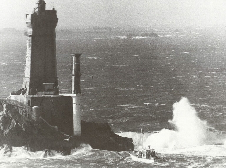 Trois ans plus tard, en novembre 1929, le phare est une fois encore coupé du monde. Noyée sous des rafales de pluie, la tour est à peine visible. La relève n’a pu avoir lieu le 18, comme prévu. Les gardiens Malgorn et Marzin vont assurer leur service pendant quarante-cinq jours, dans un édifice que la mer en furie semble s’acharner à détruire.