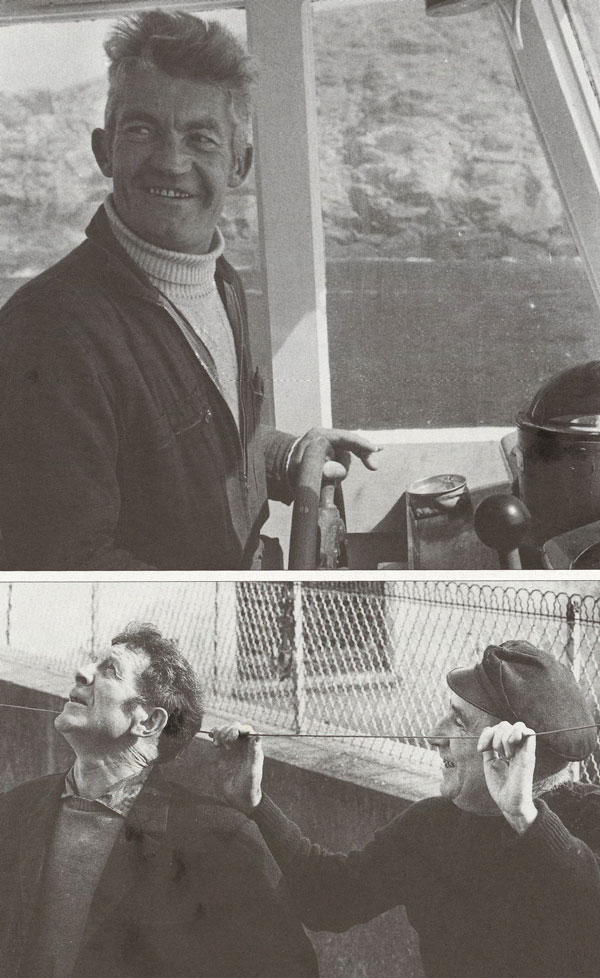 Bien sûr, depuis le temps qu’il les emmène sur sa Velléda, Henri Le Gall s’est lié d’amitié avec les gardiens et il n’en par-là jamais sans émotion. « Jean Vichon et Germain Carval, tous deux du village de Lescoff, sont entrés aux Phares en 1945. Jean a fait toute sa carrière sur la Vieille. « Je suis le vieux de la Vieille », disait-il. Après dix-sept ans sur la tour d’Armen, Germain est venu le rejoindre. Ensemble, ils feront équipe pendant quatorze ans. Ils se complétaient : la joie de vivre, l’humour de Jean compensaient la nature plus secrète de Germain qui parlait peu. Ils ont disparu tous les deux aujourd’hui. L’après-midi de mon départ en retraite, j’accompagnais mon ami Jean à la tombe. »
