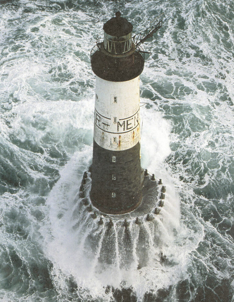 (1) Entre 1859 et 1924 quelque 35 tourelles ont été emportées par la mer au large du Finistère (Louis Le Cunff, Feux de Mer). La force d’une lame pour un phare exposé aux tempêtes est de l’ordré de 6 à 10 tonnes, jusqu’à 60 tonnes le m². (Emile Condroyer, Les hommes dans la tempête)