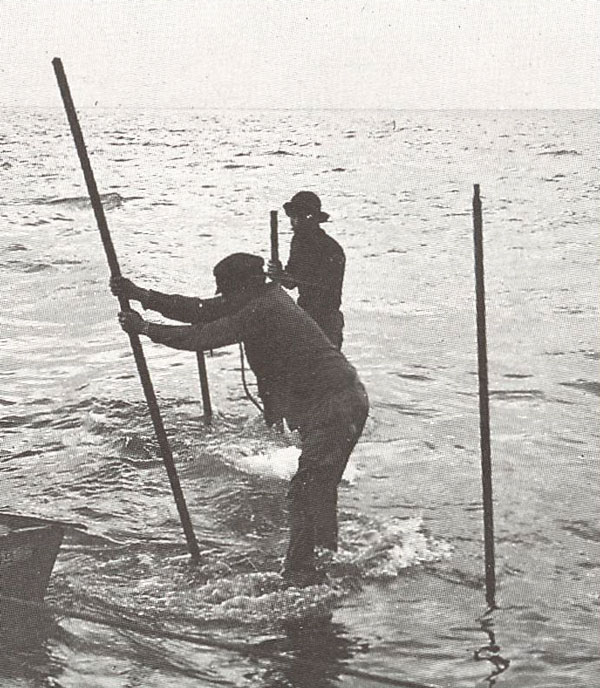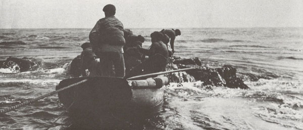 « Dès qu’il y avait une chance d’accoster, note un ingénieur, deux hommes descendaient sur la roche munis de leur ceinture de sauvetage, se couchaient sur elle, s’y cramponnant d’une main, tenant de l’autre un marteau et travaillant avec une activité fébrile, incessamment couverts par la lame qui déferlait par-dessus leur tête. Si l’un d’eux était entraîné par la force du courant, sa ceinture le soutenait et une embarcation allait le repêcher pour le ramener au travail. »
