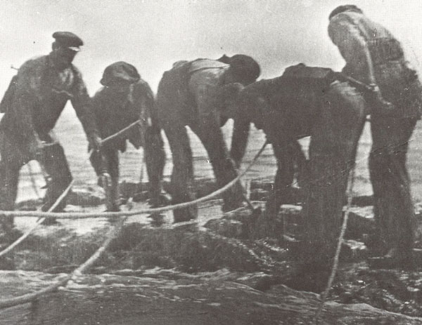 Manœuvres de la pointe du Raz : Canté, Lansonneur, Michel et André Coz, Cozic, Mathieu Kerloc’h, Guillaume Riou, Guillaume Bloc’h, Carval, Belbéoc’h, Kérisit, Gloaguen, Alain Pennamen, Clet Carval, Griou, Coquet, Gaïfas, Guillandre.